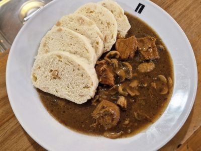 Segedínský guláš se smetanou a bramborovými knedlíky 137