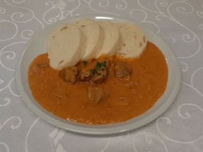 150g Hovězí guláš, houskový knedlík / těstoviny