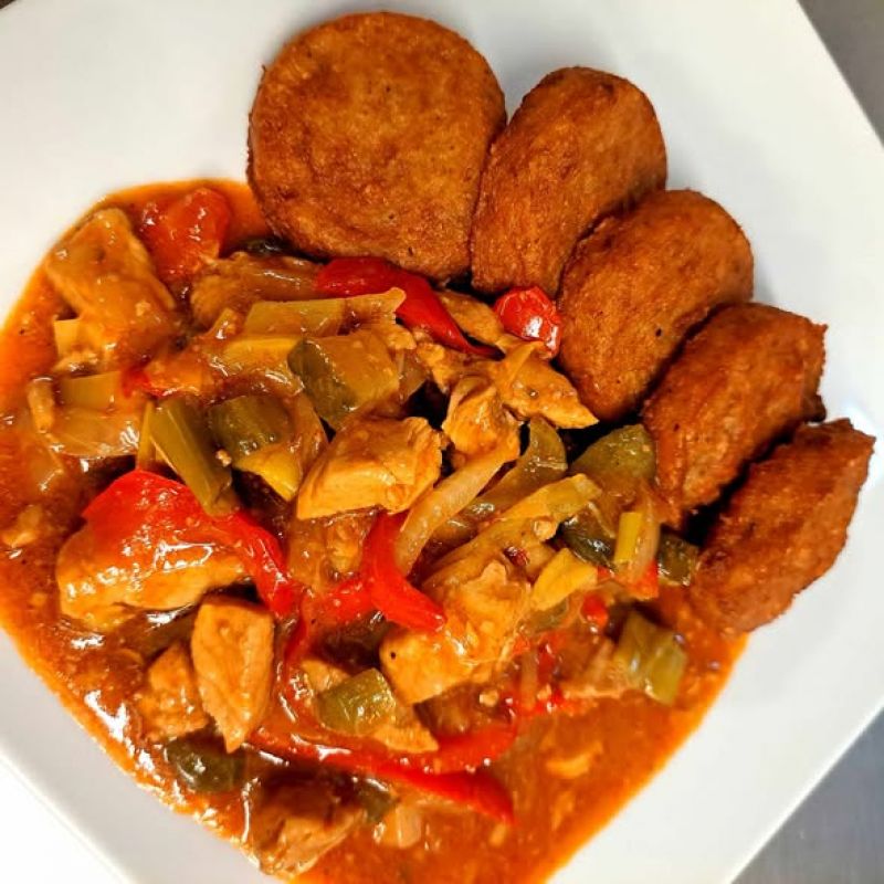 150g Perkelt z vykoštěných kuřecích stehýnek s dušenou rýží