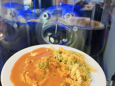 Smetanové těstoviny s kořeněným kuřecím masem a sýrem