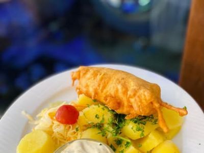 Smažený hermelín, vařený brambor, tatarská om. 137