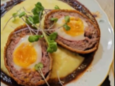 Kulajda se zastřeným vejcem, hříbky a koprem