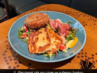 Losos 150g filet z lososa naložený v bylinkách s citronem, servírovaný na jemné krémové polentě se strouhaným sýrem Grana Padano; doplněno svěžím fenyklovým salátem a lehkou miso omáčkou (1,4,7,12)