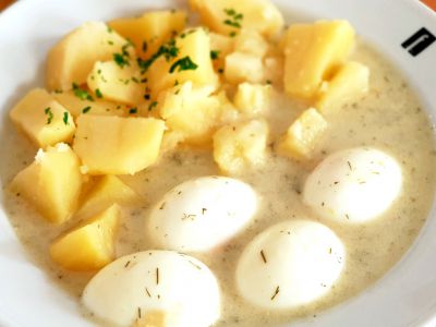 Křenová omáčka s pečenými bramborami a ztraceným vejcem 🥔