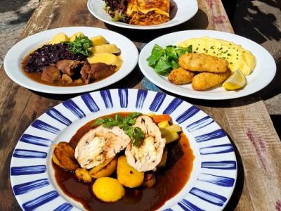 Menu s polévkou 120g Vepřový guláš na pivu, houskové knedlíky 137