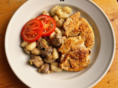 pečené kuřecí stehno na rozmarýnu a vařený brambor