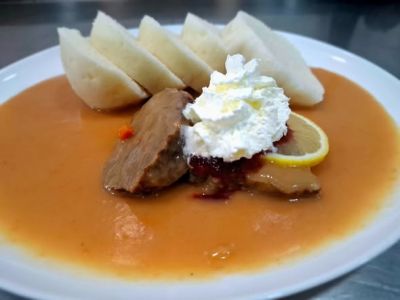 Segedínský guláš se smetanou a houskovými knedlíky 137