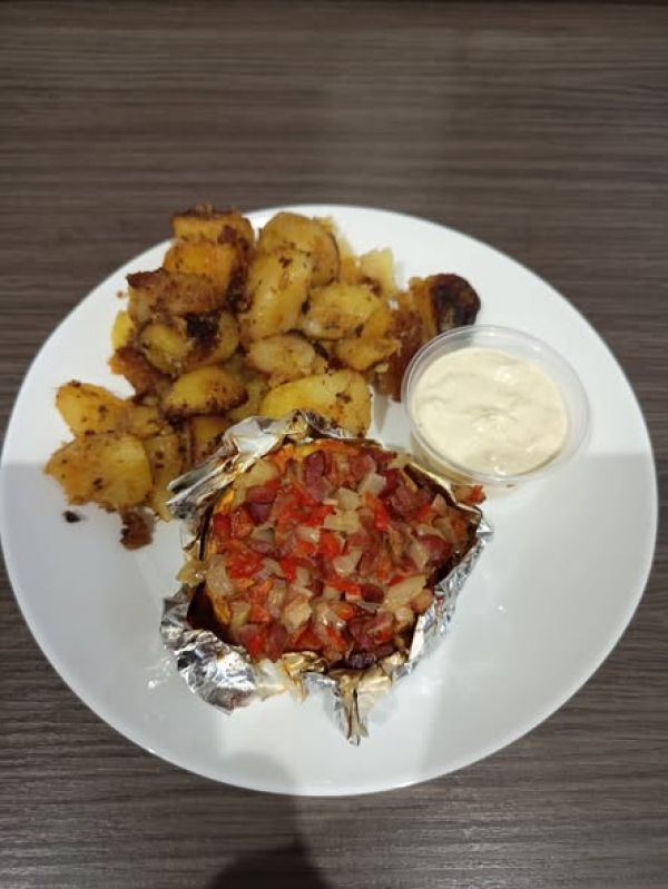 | 6. | Kuřecí Cordon blue, americké brambory, tatarská omáčka 1, 3, 7 | 145 Kč |