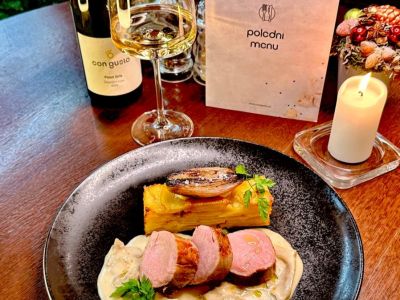 Zvěřinový guláš z divočáka podávaný s domácím karlovarským knedlíkem 137