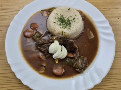 150g Plzeňský vepřový guláš, rýže nebo houskový knedlík