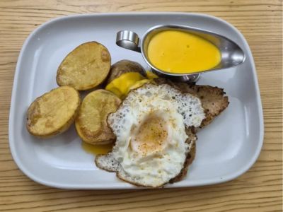 🔸Smažená gouda, vařené brambory s máslem a petrželkou, jogurtová tatarka s koprem a kapary, mix listových salátů
