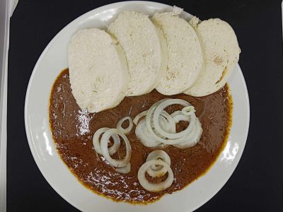 MENU:0, 2l Zelná s klobásou +300g ZAPEČENÉ ŠPAGETY s vepřovým masem na kari a žampiony