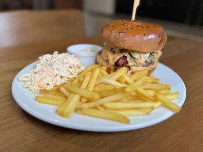 Goodies Burger 2x90g hovězí smash, cibulové chutney, čedar, slanina, rajče, naše mayo