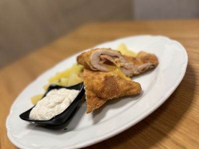 Smažený kuřecí řízek, bramborový salát s majonézou 137910