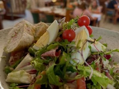 (300 g) Grilovaný hermelín na listových salátech se zeleninou, krutóny 17