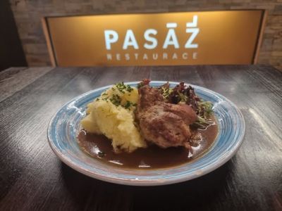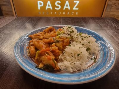 150g Vepřové kostky na paprice, houskový knedlík (těstovina)