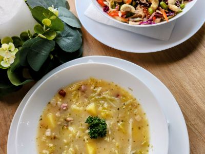150g Kuřecí plátek s bramborovou kaší a salátkem 13711