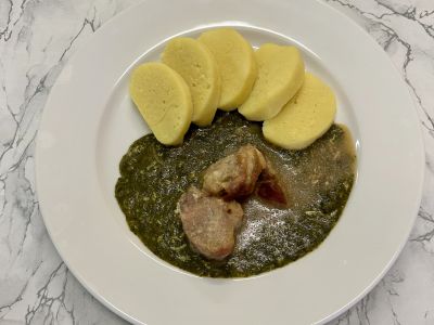 Špenátový krém s uzeným masem a medvědím česnekem