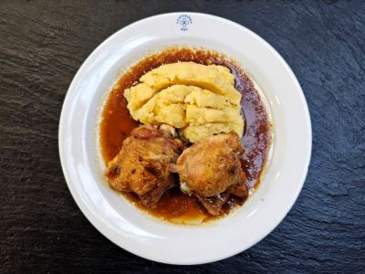 DENNÍ MENU 2 + POLÉVKA ZDARMA Vepřové ragú na houbové omáčce se šťouchaným bramborem 1, 3, 7