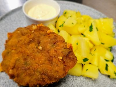 Milánský řízek z vepřové kotlety, italský bramborový salát