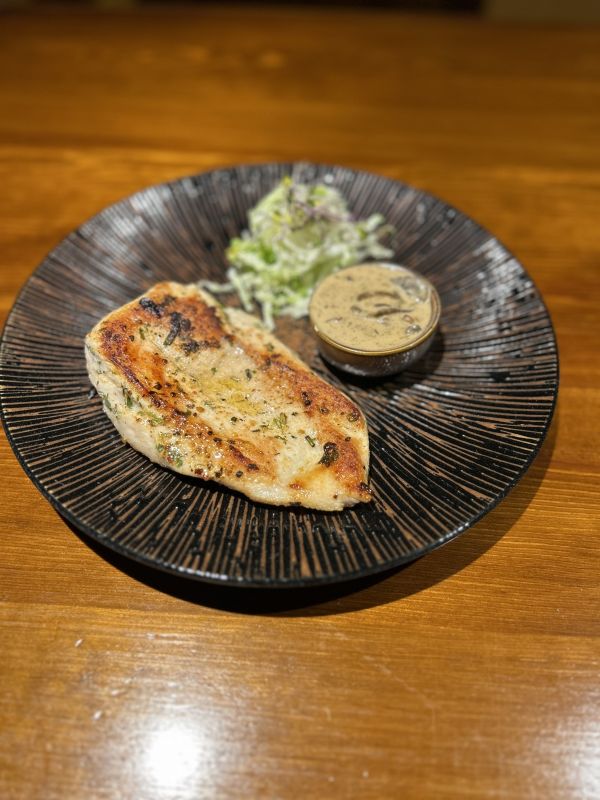 200g Grilovaný kuřecí STEAK, naše chimichurri nebo hříbková příp. pepřová smetanová omáčka; A/ brambory šťouchané s opečenou slaninou a cibulkou nebo ...
