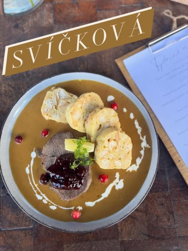 Svíčková na smetaně, karlovarský knedlík, brusinky