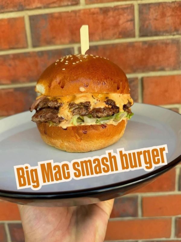 Big mac hovězí smash burger, big mac majonéza, cheddar, slanina, ledový salát, hranolky