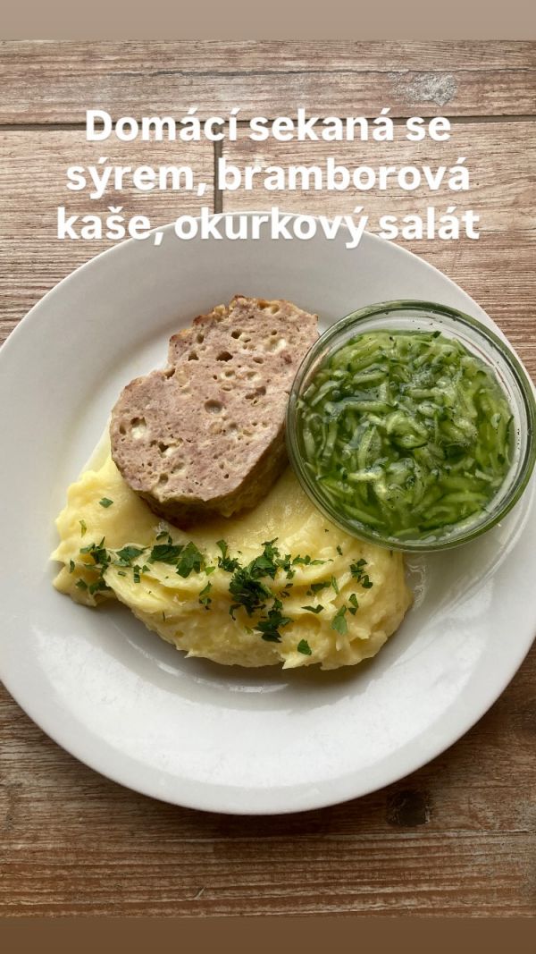 VEPŘOVÝ NEBO KUŘECÍ ŘÍZEK, VAŘENÝ BRAMBOR, KYSELÁ OKURKA