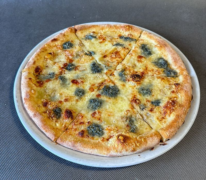 Pizza Quattro formaggi - smetana, mozzarella fior di latte, gorgonzola, Brie, Grana Padano 24M