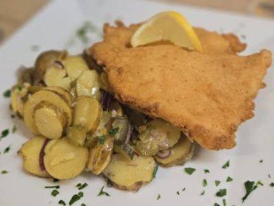 Smažený vepřový řízek s domácím bramborovým salátem