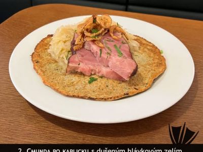 „Cmunda po kaplicku“ domácí bramborák, uzené maso a kysané zelí