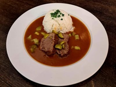 150g vařené hovězí přední, tat. omáčka, varené brambory