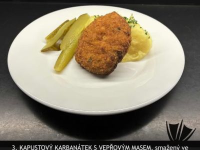 1. 150 g Vepřové výpečky se zelím, bramborové knedlíky (A: 1,3,7)