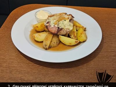 6. 180 g Vepřový Cordon Bleu, vařený brambor, tatarská omáčka (A:1,3,7,10)