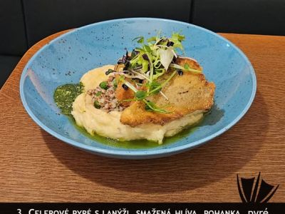 3. 150 g Filet z mořské štiky (hejk), bramborovo-batátové pyré (A:4,7)