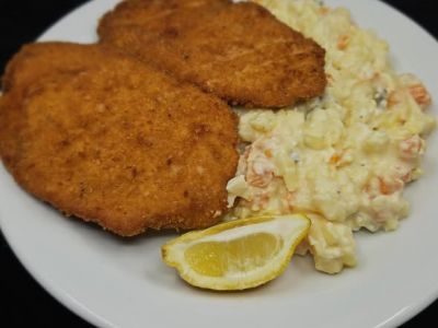 150g Smažený řízek z vepřové kotlety, tradiční bramborový salát