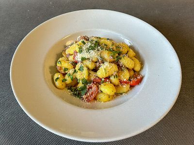 300g Gnocchi s kuřecím masem a gorgonzolou, sypané sýrem Pecorino