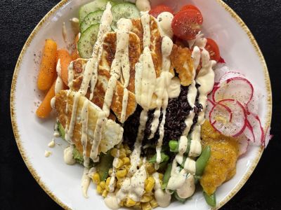Míchaný zeleninový salát s kuřecími kousky, dresing 137