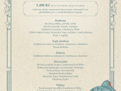 160g husarská vepřová roláda, šťouchaný brambor s jarní cibulkou, kyselá okurka (1,3,9)
