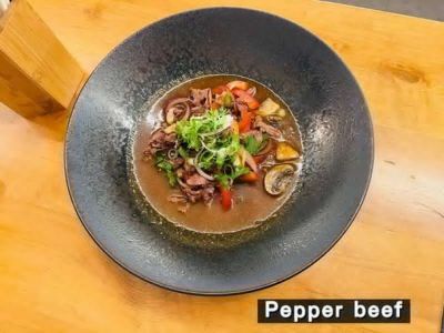 Steak z krkovičky se šťouchanými bramborami a pepřovou omáčkou