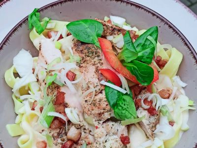 Pečené kachní stehno, kys. zelí, houskové knedlíky