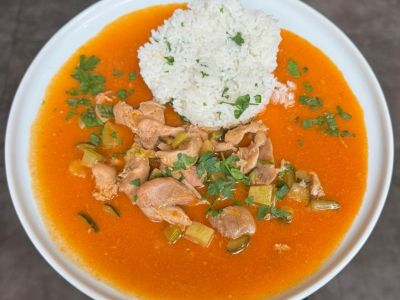 • Kuřecí kousky se zeleninou na kari, jasmínová rýže