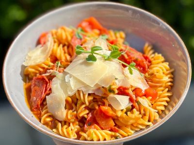 Kuře na paprice s těstovinami fusilli
