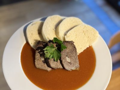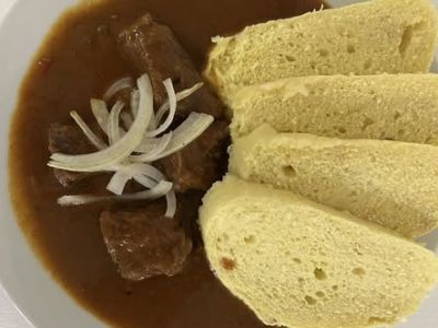 Domácí hovězí guláš, houskový knedlík nebo chléb