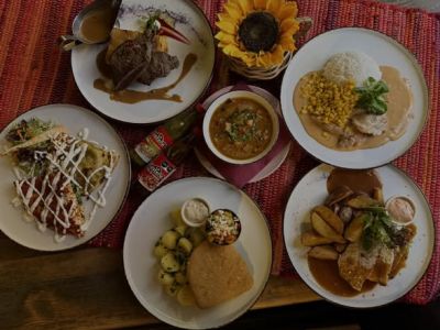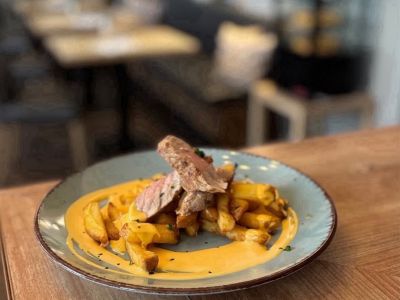 120g Filírovaná vepřová panenka, kovbojské fazole, šťouchané brambory, chilli dip 137