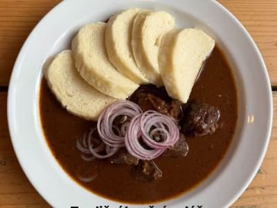 Plzeňský hovězí guláš, houskový knedlík