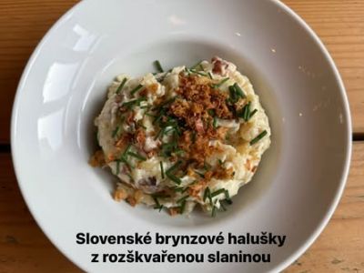 Halušky s brynzou, slaninka, cibulka