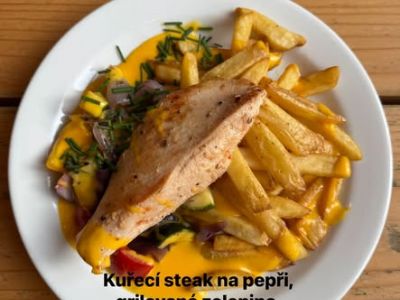 250gKrkovička na grilu, hranolky, čes. omáčka 269, 200g Panenka na grilu, hranolky, čes. om.