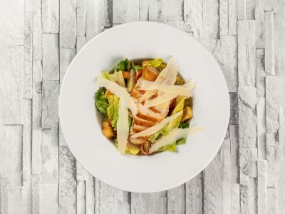 350g Zeleninový salát s kuřecím masem (100g), bagetka 1, 3, 7 137
