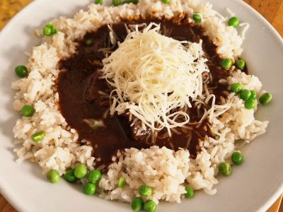 Vepřová játra na cibulce a slanině s dušenou rýží 1